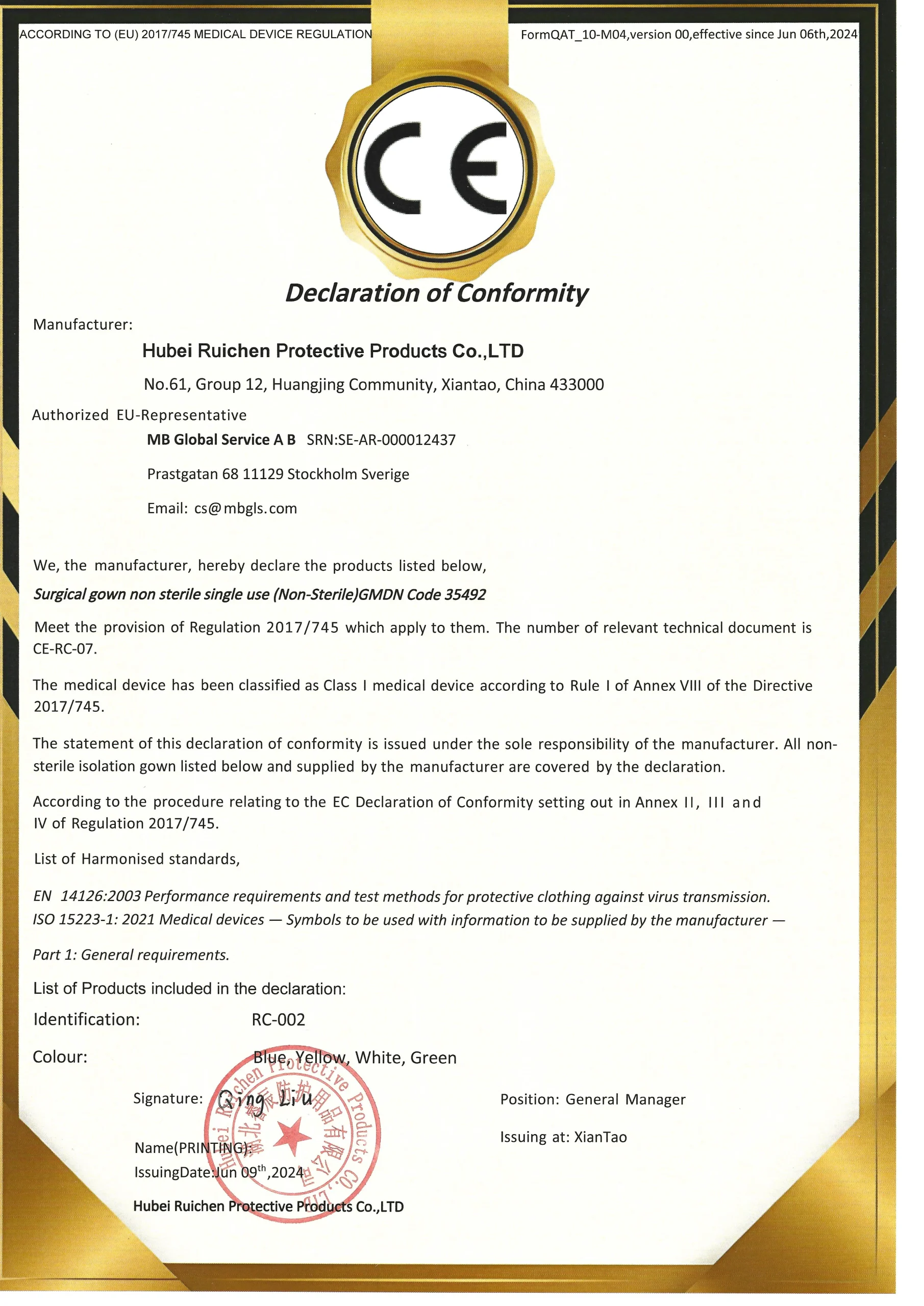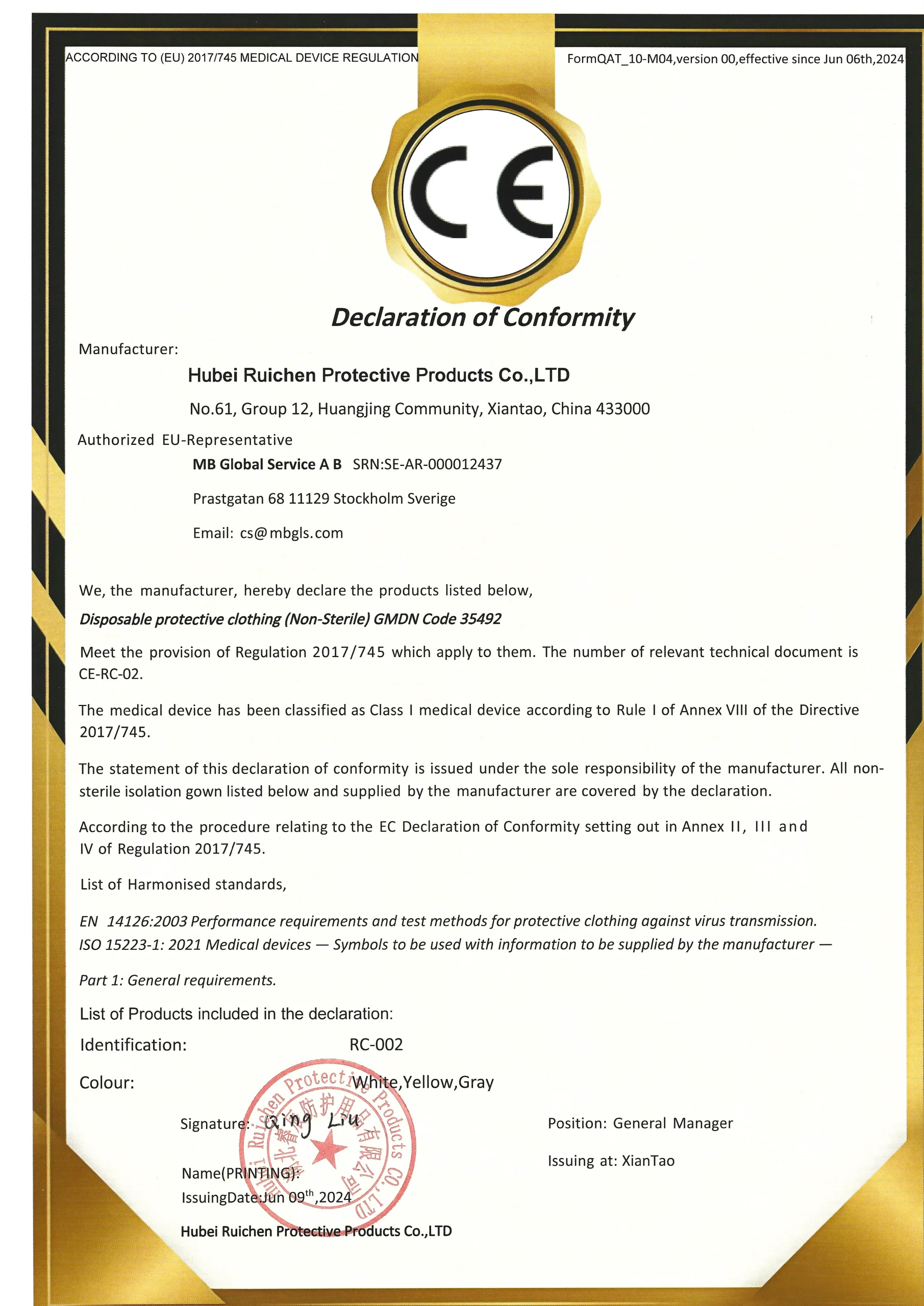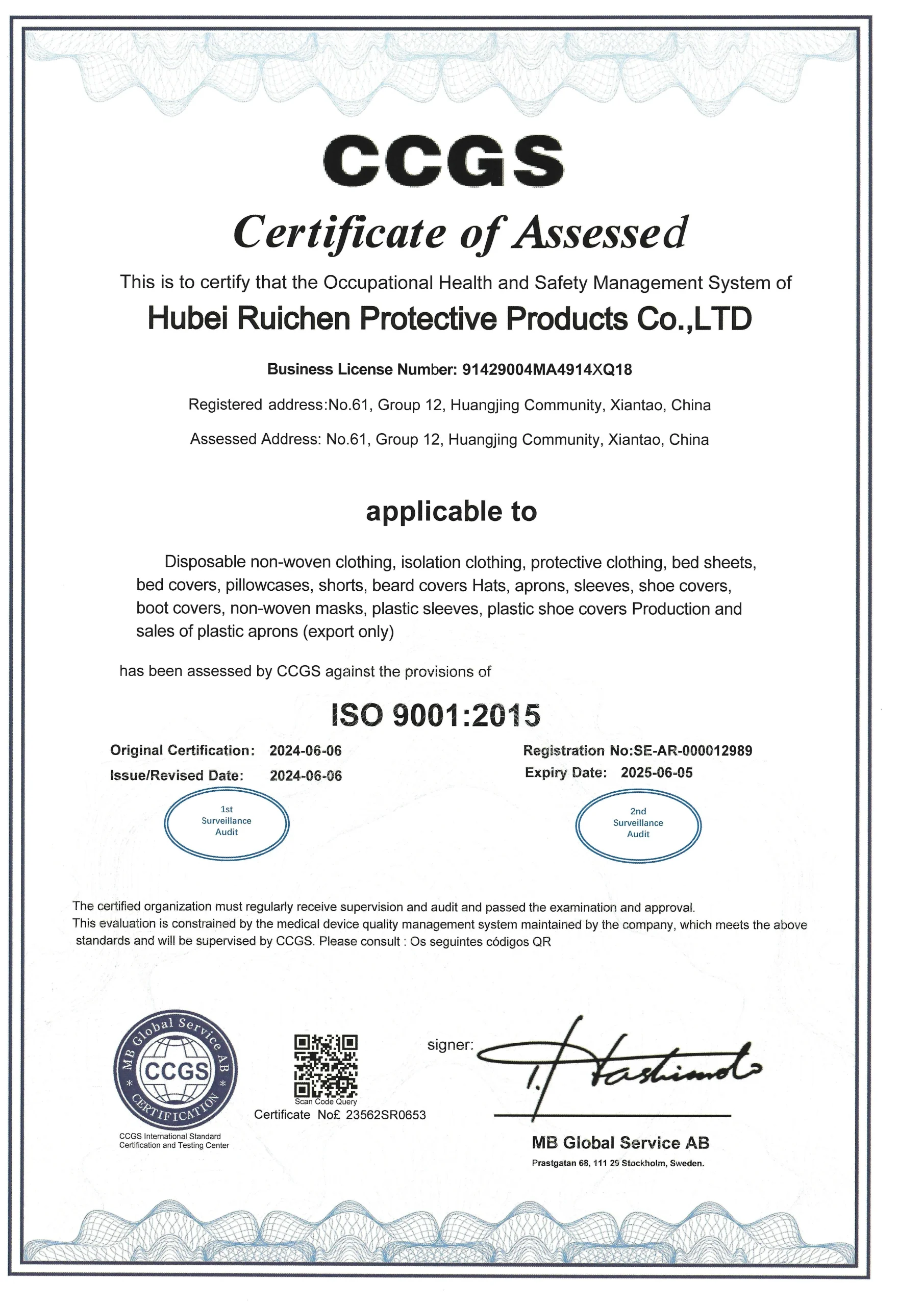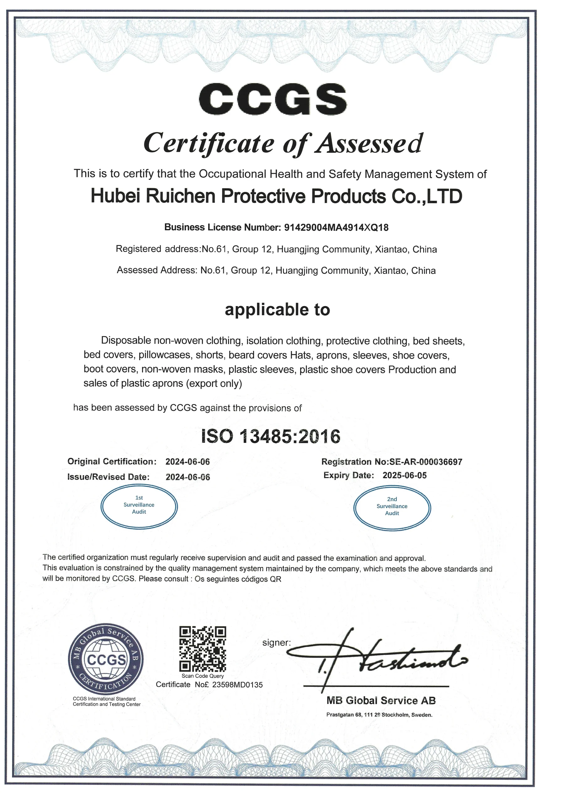 Hubei Ruichen Protective Products Co.,LTD is situated in Xiantao city,Hubei province,which is one of the largest non-woven items production base in China.